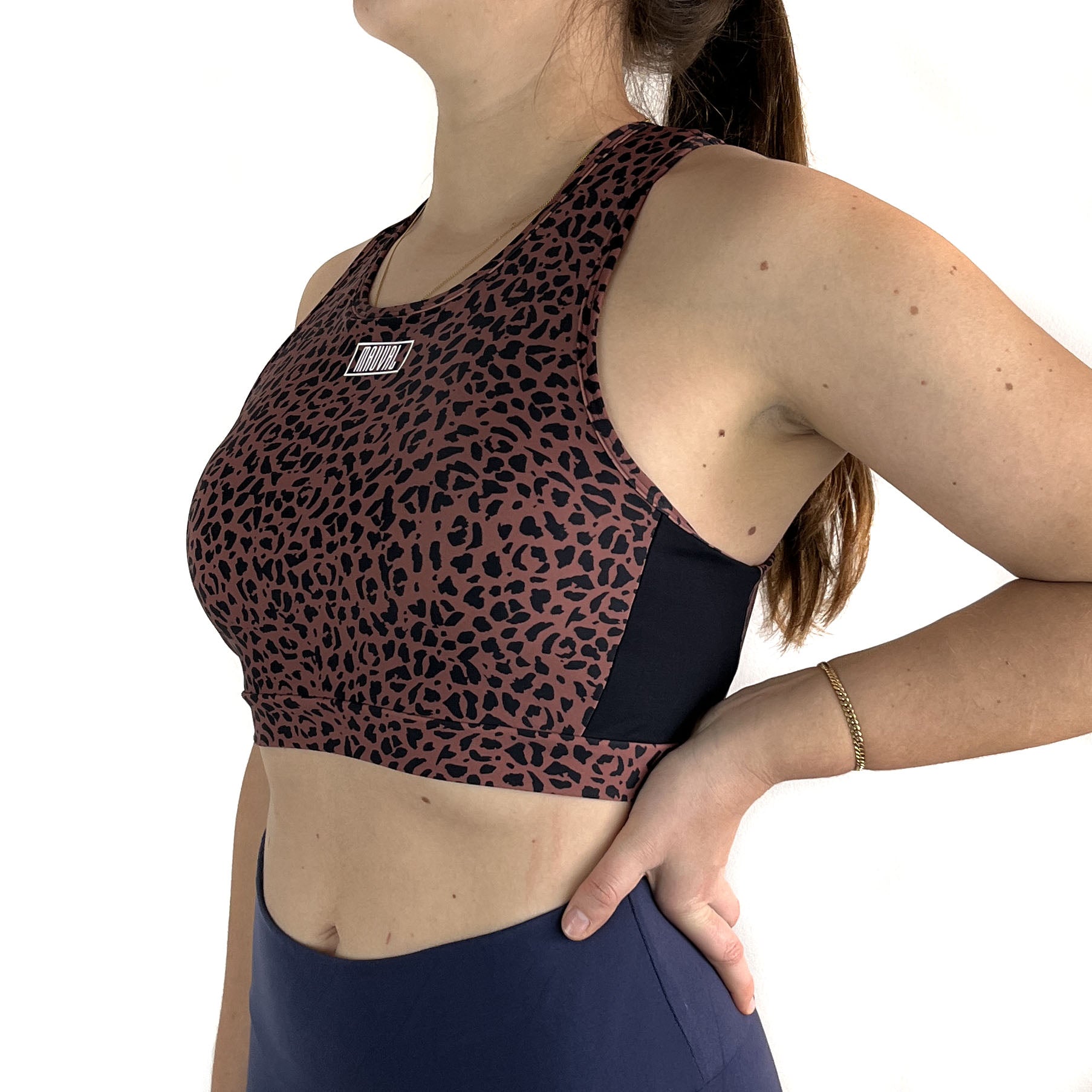 Copas removibles y cuello redondo, confeccionada con Suplex Brasilero. Doble tela en la espalda, forro en el pecho, pretina y elástico interior para mejor soporte.